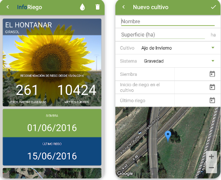 • InfoRiego: herramienta que, apoyada en las tecnologías de la información, proporciona el conocimiento necesario sobre el consumo de agua de los cultivos para afrontar una programación de riego eficiente, enfocada a conseguir unos rendimientos óptimos, ofreciendo recomendaciones de riego personalizadas. Más información aquí.