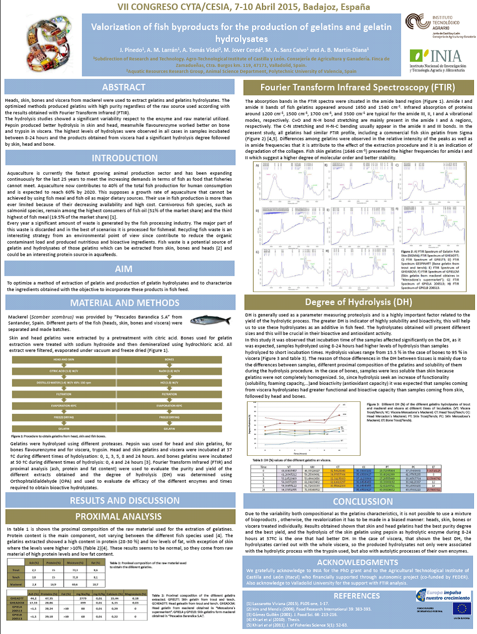 - "Valorization of fish byproducts for the production of gelatins and gelatin hydrolysates". VII CONGRESO CYTA/CESIA, 7-10 ABRIL 2015, BADAJOZ, ESPAÑA